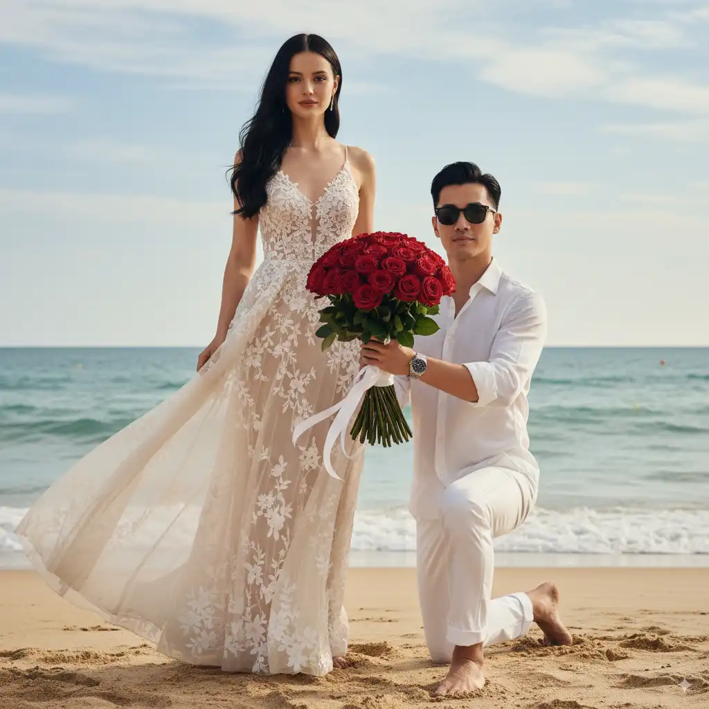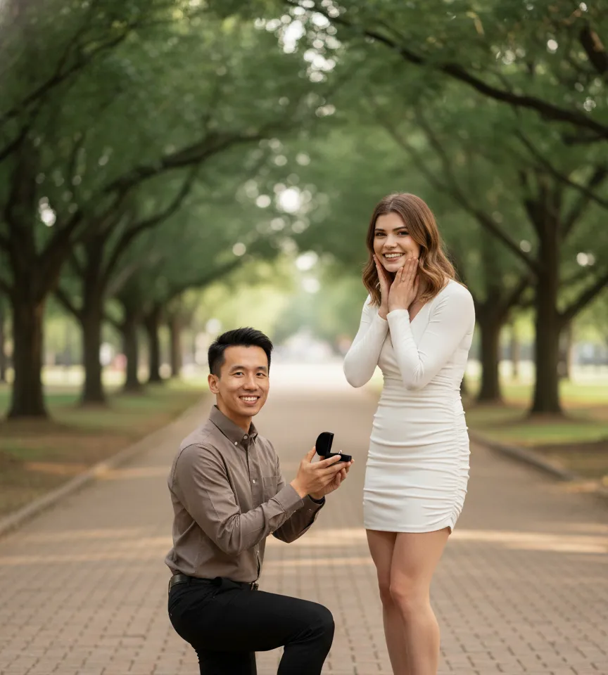 Our AI engagement generator offers movie-style proposal scenes that you can create in seconds by just uploading your face photos.
