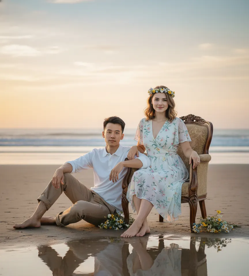Yes, many of our outdoor templates feature warm sunset lighting to give your couple photos that professional golden hour glow.