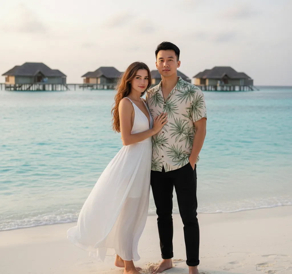 Our nature AI uses neural depth mapping to ensure your couple portraits look naturally blended with mountain and forest backgrounds.