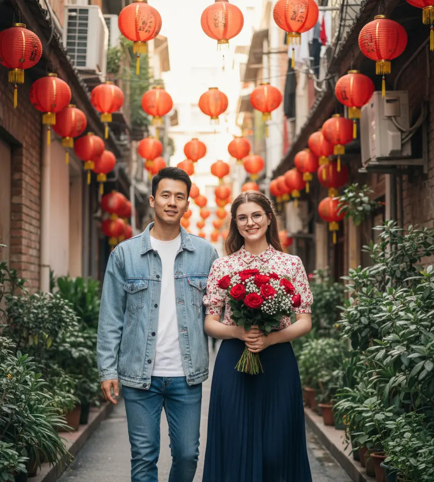 Lantern Alley Couple Stroll