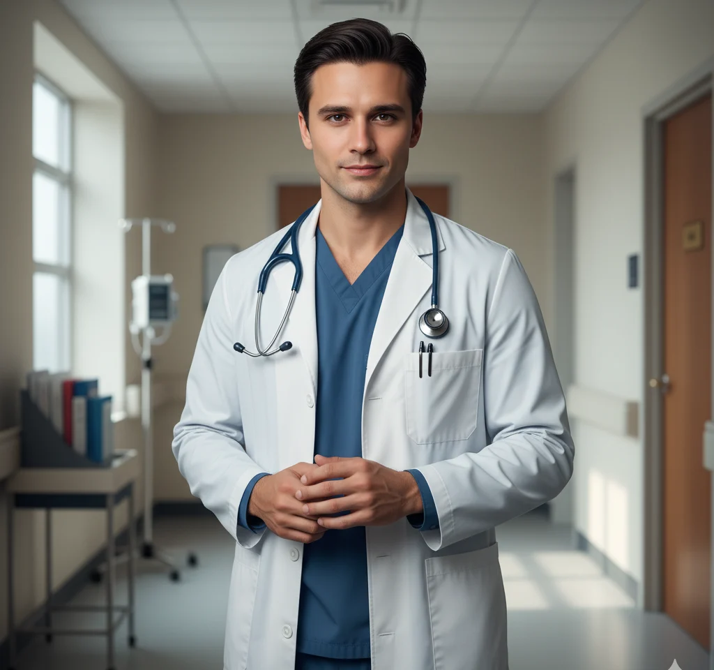 Yes. Upload a clear selfie and our AI generates a professional medical portrait with white coat, stethoscope, and clinical settings.
